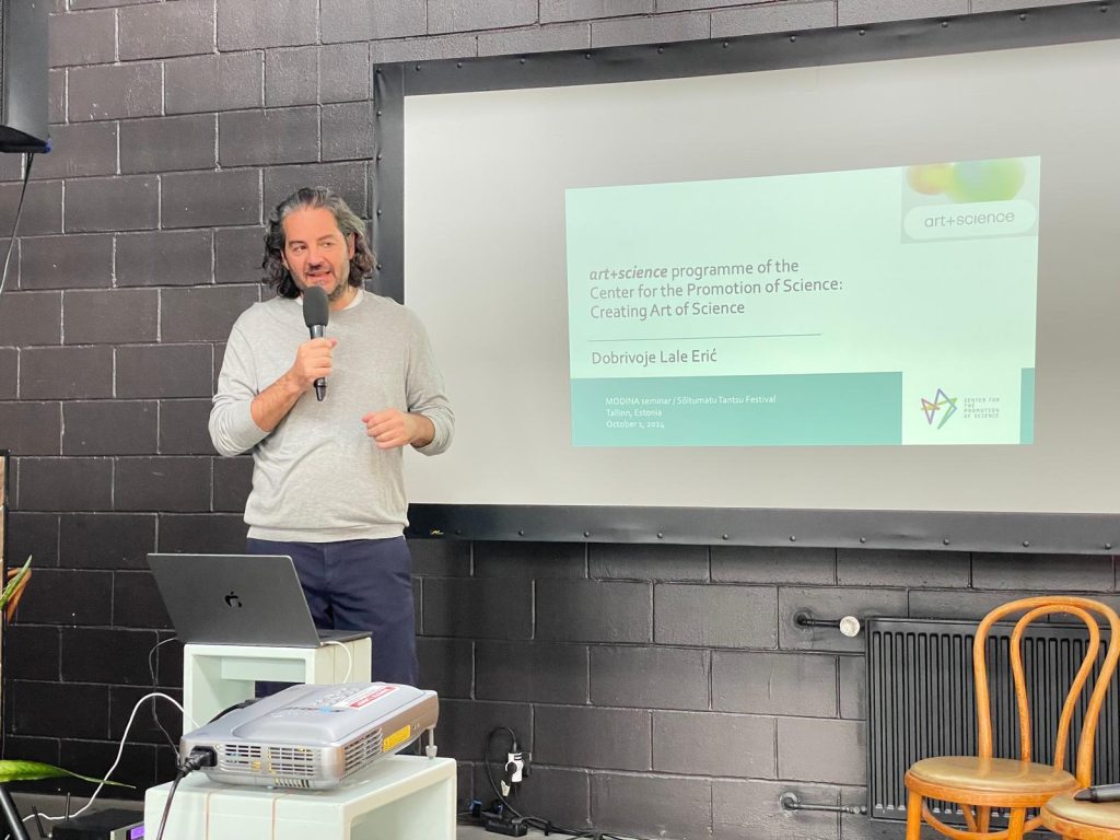 The STF Festival, a prestigious annual gathering of artists and researchers who connect contemporary technologies with performance arts, was held in Tallinn, Estonia, from 26 September to 5 October 2024. During the Festival, the MODINA project, supported through the EU Creative Europe programme, organized several thematic segments including presentations of interdisciplinary projects, discussions with participating artists and researchers, and a seminar in a hybrid format. The project regularly publishes calls for interdisciplinary research by artists and scientists, and on this occasion, they announced the next cycle, which will involve a team from Serbia.